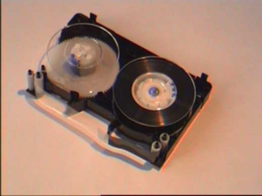 Maintenant on peut attaquer, il faut d'abord rembobiner complètement la k7 VHS-C et une des VHS (celle qui accueillera la bande), l'autre sera complètement avancée (celle qui fournira la bande). Ceci fait, il faut les démonter toutes les trois en repérant bien l'emplacement de toutes les pièces (sans les perdre).