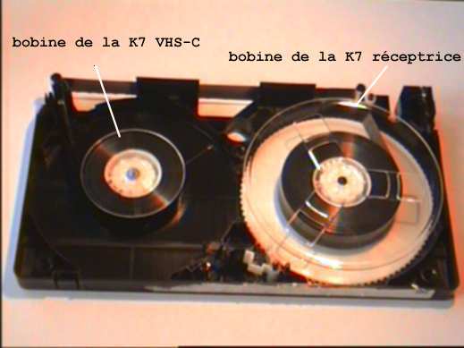 Je vais vous expliquer en quelques mots le transfert de la bande d'une cassette VHS-C enregistrée sur une cassette VHS et la recharge de la VHS-C avec de la bande vierge.