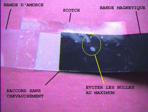 Attention vous devez coller l'arrière de la bande afin que le scotch ne soit pas en contact avec le tambour de tête. Le scotch doit arriver au bord de la bande mais sans déborder, puis raccorder la bande amorce.