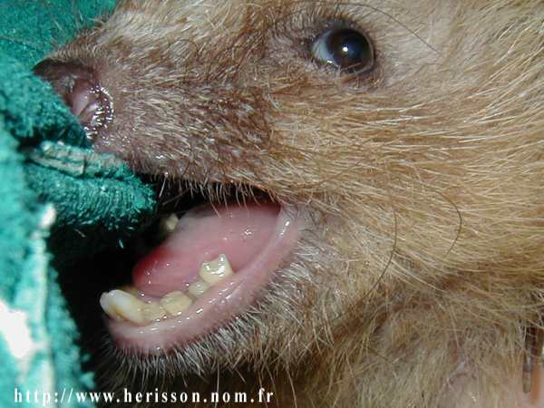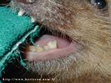 Sur la photo de gauche on aperçoit les deux incisives sur la mâchoire supérieure.