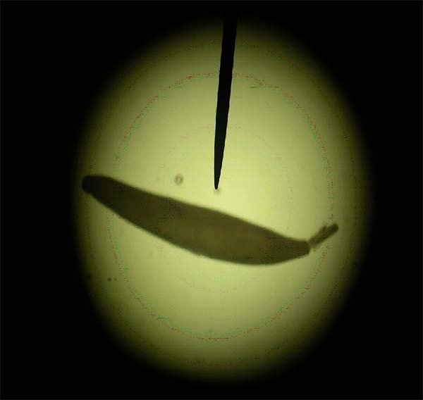 Live thorny-headed worm – the proboscis moved in and out of the body.