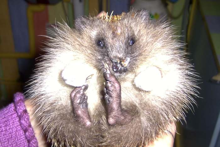Le hérisson ci-dessous a été blessé au nez et scalpé par une débroussailleuse (cliquer sur suivant pour voir l'évolution et les Zooms)