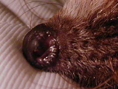 Il peut arriver de trouver des hérissons qui on été attaqués par un autre animal, il en résulte parfois une plaie ou l'ablation d'une partie du nez (voir photo ci-dessous, partie blanche du nez), ce qui peut entainer une perte partielle ou totale de l'odorat (très grave chez le hérisson). En effet n'ayant pas une très bonne vue il fait souvent appel à son odorat et son ouie pour se déplacer.