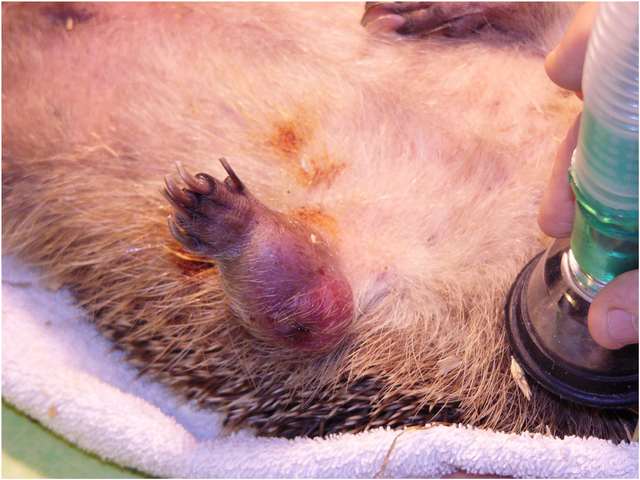 ![]() Hérisson arrivé au sanctuaire avec |