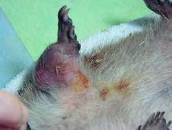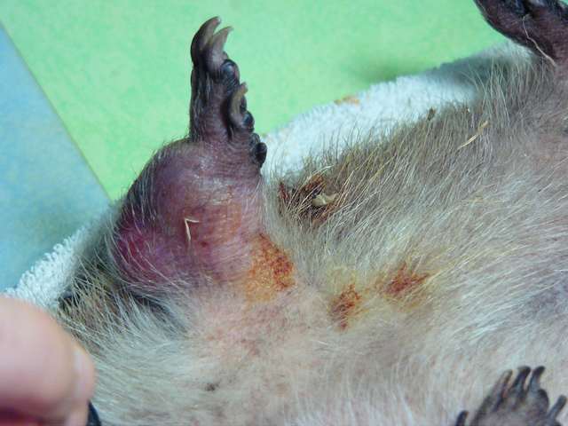 ![]() une tumeur énorme à la patte avant gauche |